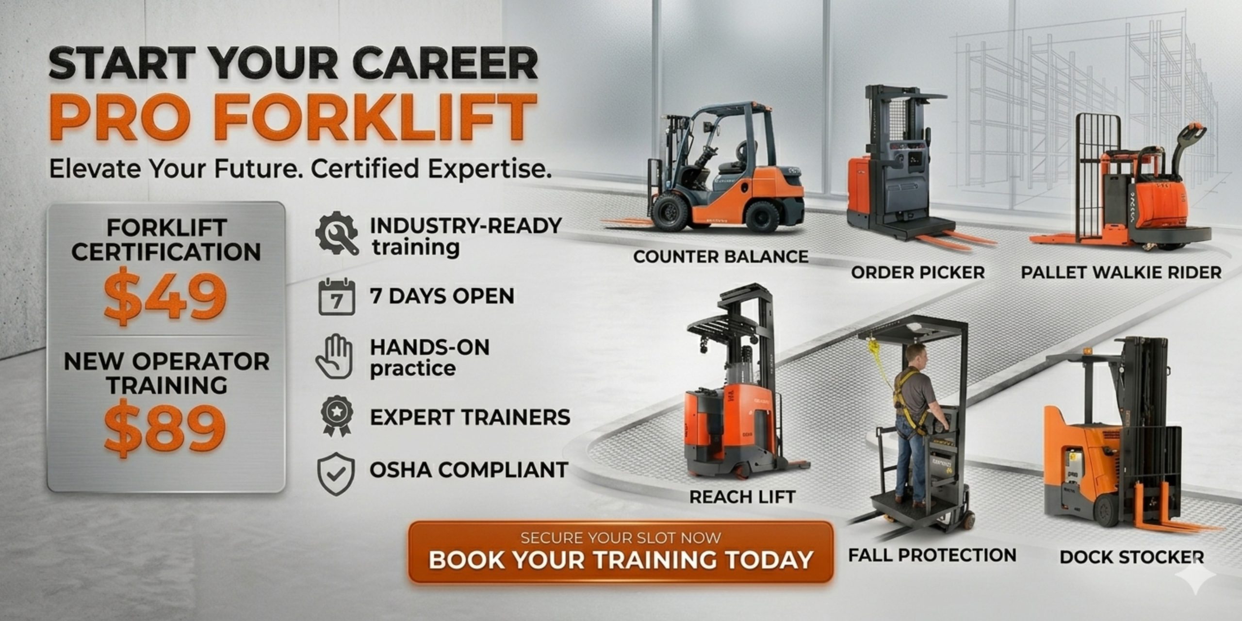 Our courses are designed to cover essential forklift types and safety requirements, ensuring you are fully prepared for real-world operations: